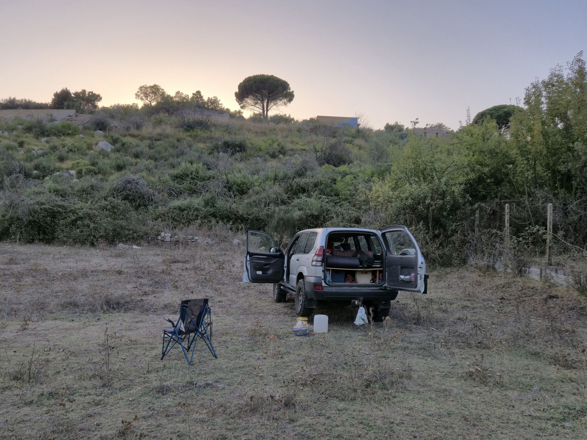 Traversée de la ville, pas un mot sur la conduite à Palerme. Ça ne s’oublie pas. Et trente kilomètres plus loin premier bivouac sicilien
