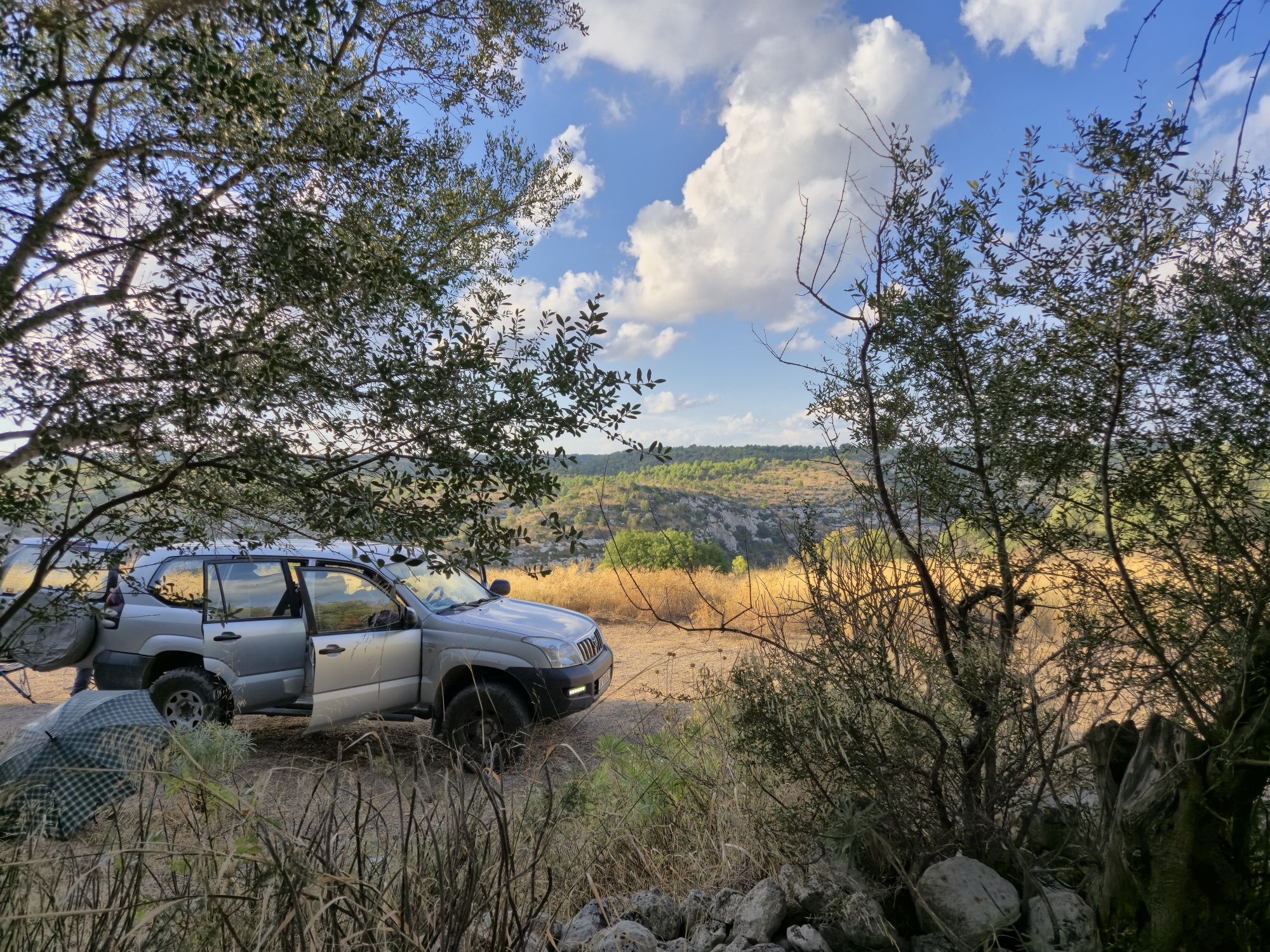 Remontée au nord de Noto (où nous irons demain) : un biv de rêve, sur le site du « vieux Noto » (i.e. la ville de Noto d’avant le tremblement de terre vers 1600) :